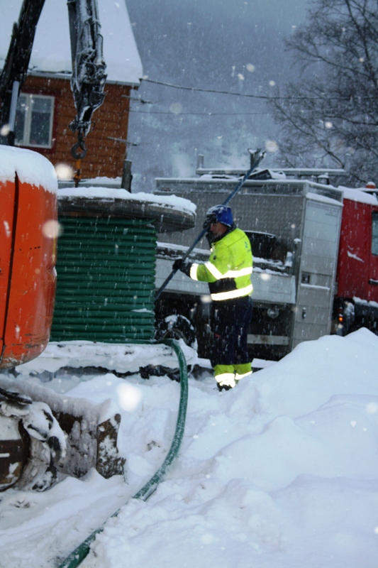 Straum er kjekt å ha. Fram til byrjinga av januar brukte me av vårt private abonnement, det viste seg å verta litt dyrt no når januarrekninga kom :(.Då me kom i gang for alvor i byrjinga av januar var det sjølvsagt av høg prioritet å få lagt inn byggjestraum. Elektrikaren tok saka og i samarbeid med Voss Energi og Skutle Betong som måtte pigga opp ei grøft over gardsvegen, vart straumen henta frå stolpen og lagt inn i huset.