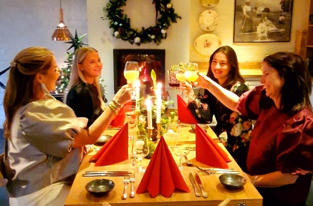 Kvar Nyttårsaftan slær me oss lause og lagar ein uforgløymeleg kveld for gjestene våre. Me pyntar restauranten og løa i stemningsfull nyttårspynt, fyrer i peisen og lyser opp med levande ljos og kosemusikk på anlegget slik at alt ligger til rette for å koma i godlag.
