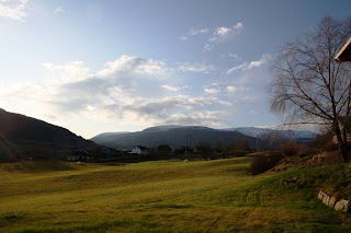 Sjå den fine utsikta det vart frå uteplassen nedanføre løa!
