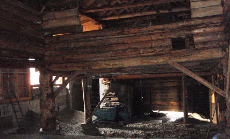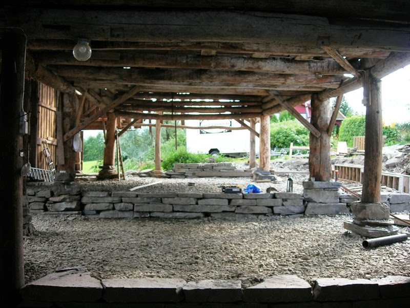 På bileta ser de konstruksjonane som er blottlagde då me reinska ut i løa under restaureringa. Her er ein link til docstoc der de kan lasta ned ein pdf med ei beskriving av løetypen.